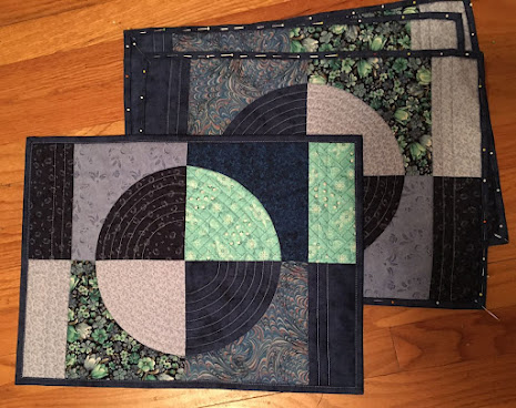In between garden work and other quilt projects I made progress on placemats for a sister. One is totally finished and 3 more just need the binding top stitched by machine.